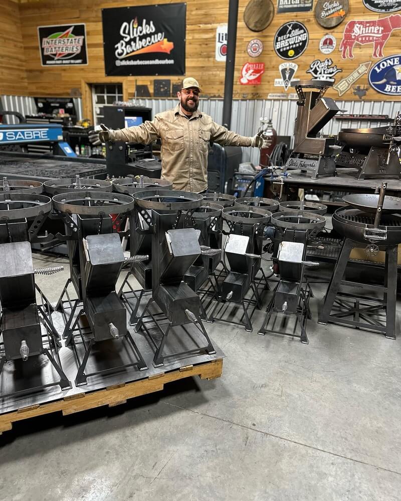Slicks Fabworks is not just a grill manufacturer; it's a family-driven passion project that transforms outdoor cooking into an unforgettable experience. Founded by Cody and Brittanie Eslick, our mission is to revolutionize the way people connect with the outdoors. Our customizable wood-burning stoves and grills are not just products; they're the embodiment of a lifestyle centered around good food, great company, and lasting memories.